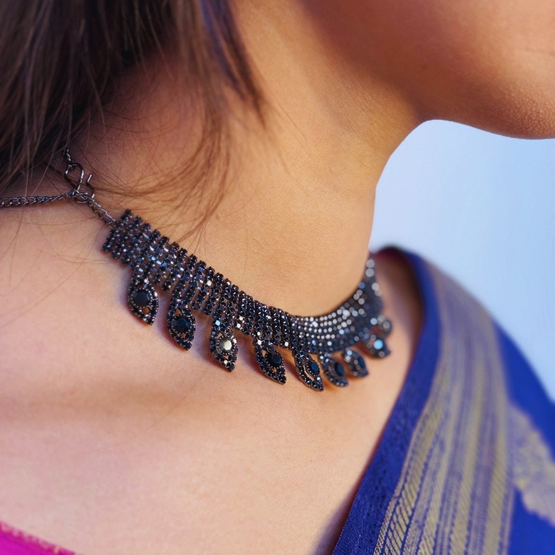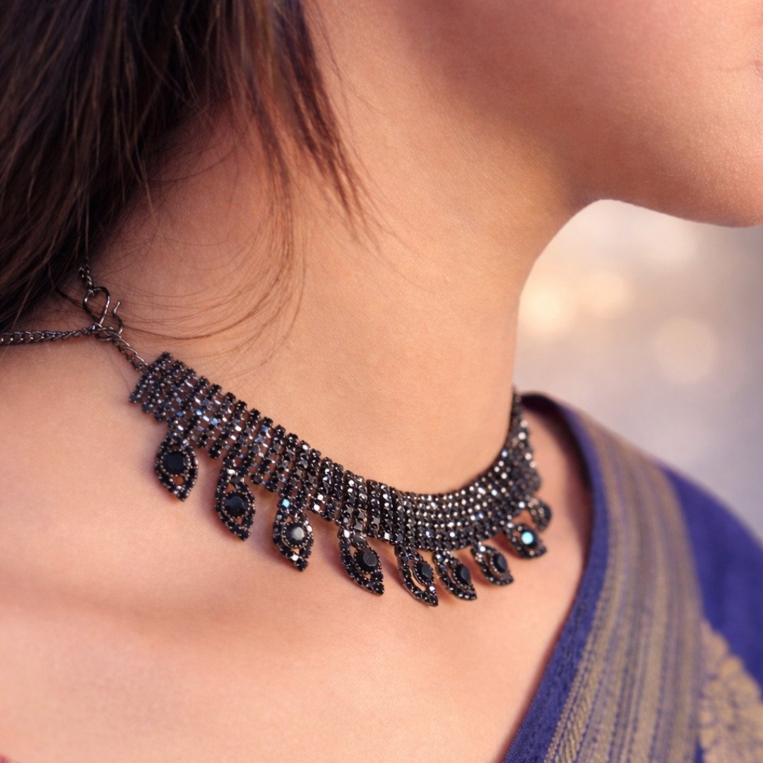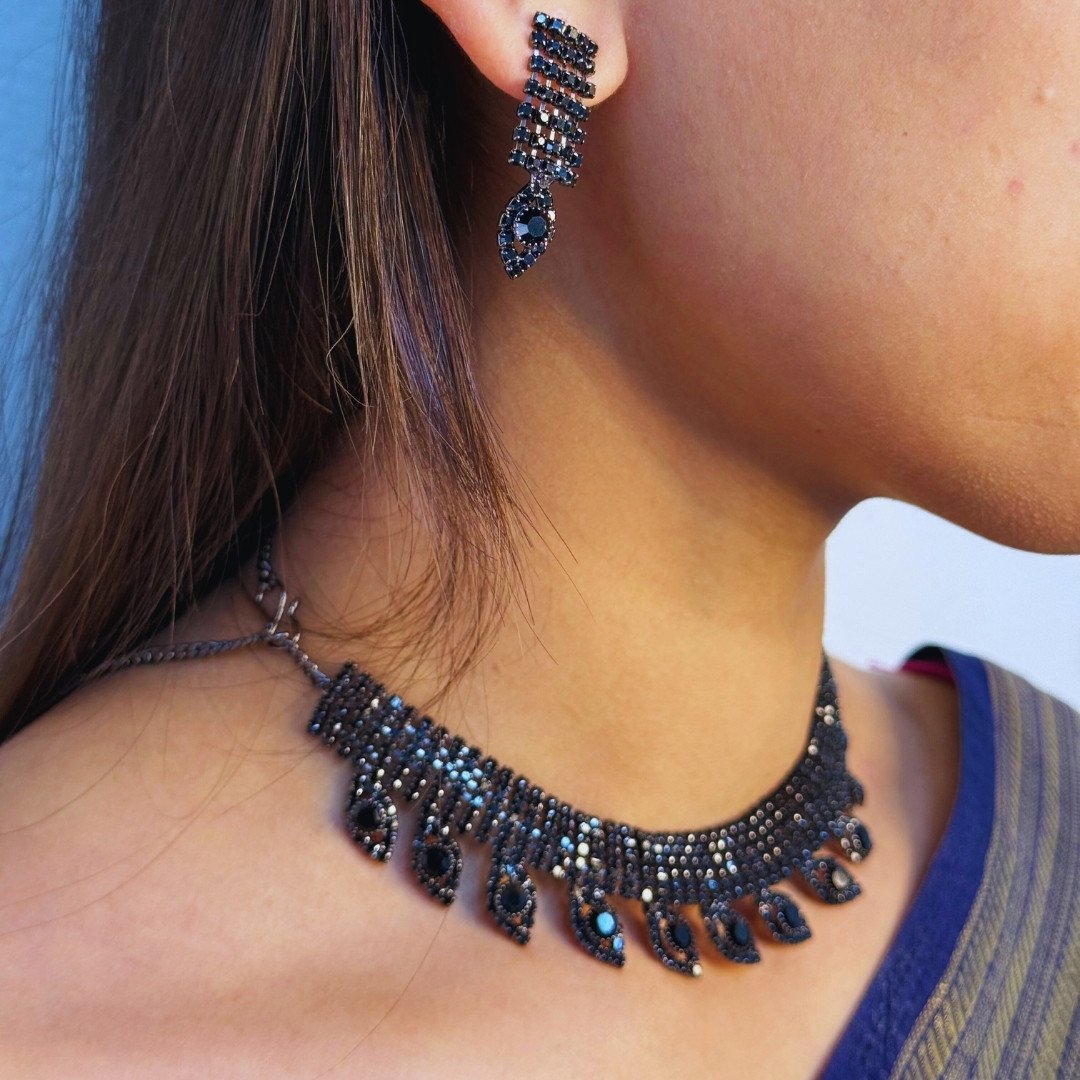 Be the first to review “Midnight Black Circular Stone Studded Necklace Set”